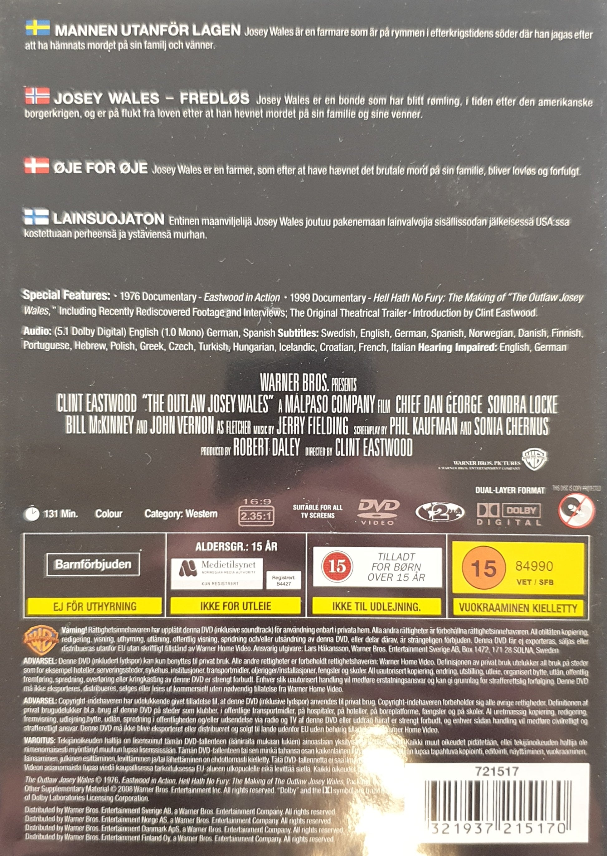 THE OUTLAW JOSEY WALES / MANNEN UTANFÖR LAGEN
